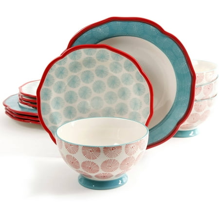 Happiness Scalloped 12-Piece Dinnerware Set, Red